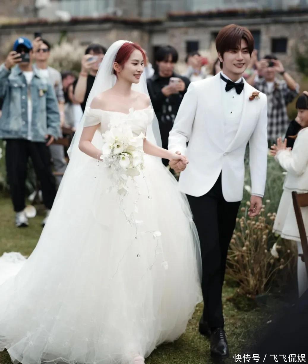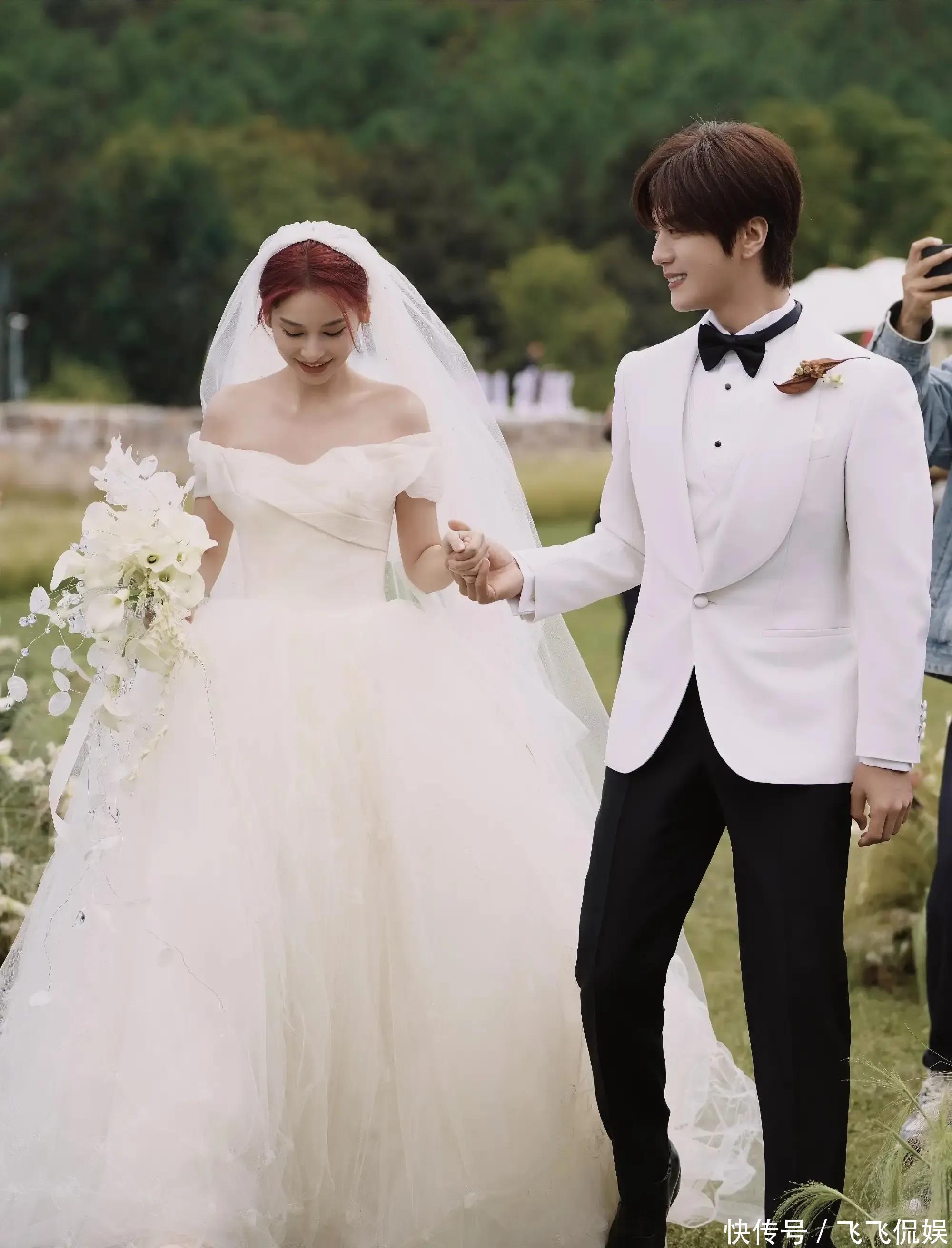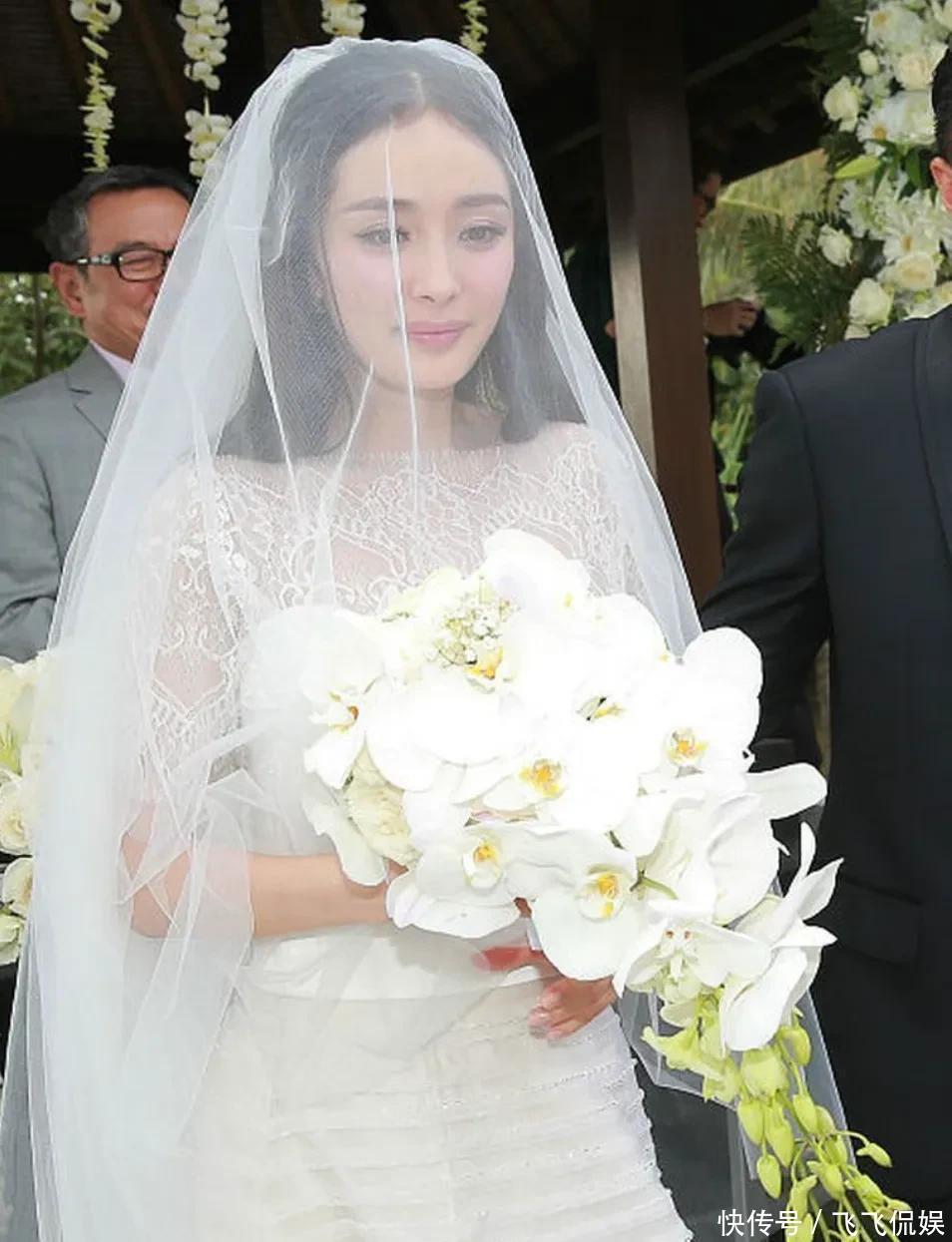 杨颖(已离婚)婚礼仪式的手捧花主花材是铃兰白玫瑰,十足的法式浪漫,花束形状呈现出来的效果非常美。