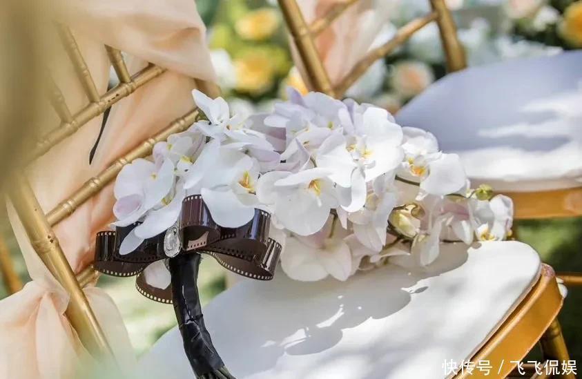 杨子姗 吴中天婚礼仪式的手捧花是白色蝴蝶兰,缠绕着定制的棕色胶卷丝带,高雅别致,与婚礼的电影主题相呼应。