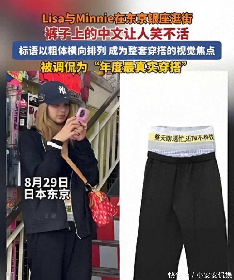 近日,BLACKPINK成员Lisa在东京街头的一条裤子,意外在中国社交媒体上投下了一枚“情绪炸弹”。这条军绿色工装裤的腰腹部,赫然印着一行醒目的中文:“整天瞎逼忙,还TM不挣钱”,下方还配有英文翻译:“Busy all damn day and still not making money”。照片一经流出,相关话题迅速冲上热搜,阅读量一度突亿。