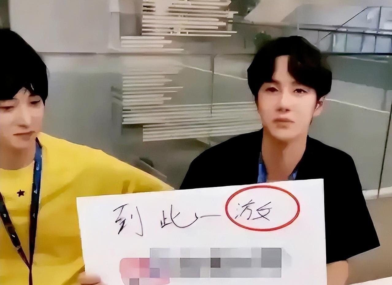 到此一游这四个字,应该是小学生就已经学会写的了,结果没想到,到了王一博这里,不知道是提笔忘字,还是根本就不会写。