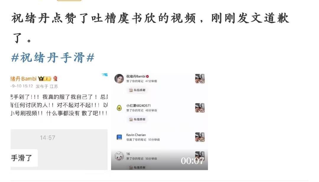 雖然后來祝緒丹也專門發(fā)了消息解釋說是因為手滑。但其實手滑不手滑的根本不重要,重要的是她在曾經(jīng)宣傳的好姐妹面前居然站到了他的對立面。