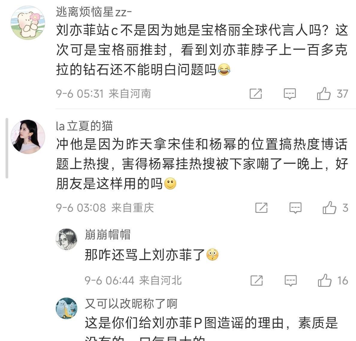 “對(duì)這個(gè)朋友好點(diǎn)可以嗎?上哪找一個(gè)頂流女星,每次都賞臉給你做活動(dòng)啊?!钡菨u漸的。這場(chǎng)由楊冪粉絲針對(duì)劉聰?shù)呐饾u漸轉(zhuǎn)移到了那個(gè)站c位的劉亦菲身上。楊冪粉絲開噴劉亦菲楊冪粉絲把占c位的劉亦菲p成了一個(gè)豬。