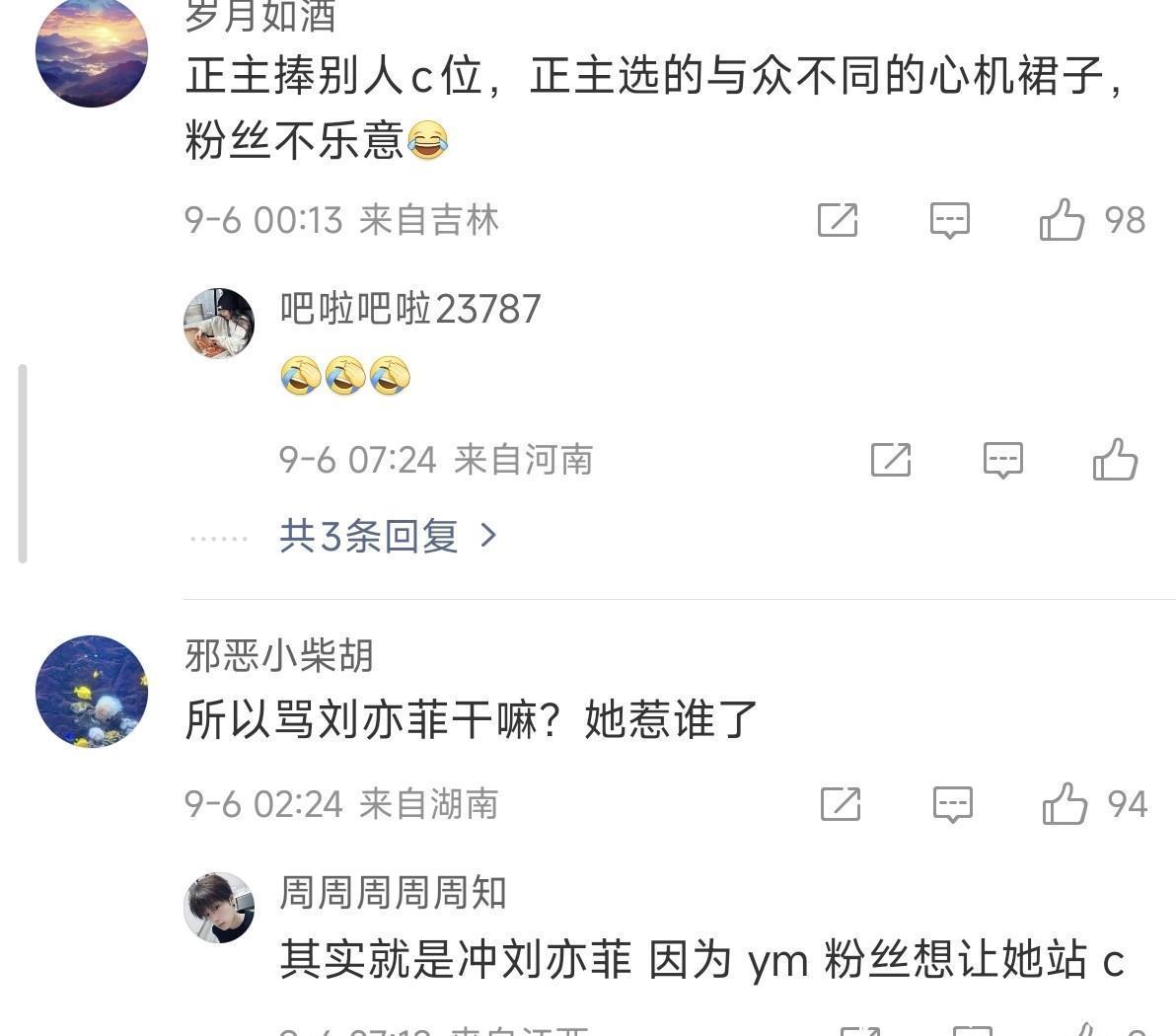 而且說(shuō)句公道話的話,劉亦菲占c位,因?yàn)樗菍毟覃惖娜虼匀?。她站c位一點(diǎn)毛病都沒(méi)有。