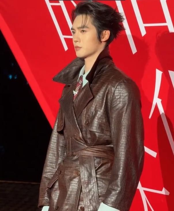 將耳釘當(dāng)作領(lǐng)針使用,黑色皮質(zhì)手套成為全場(chǎng)焦點(diǎn),被贊為"冷峻紳士"與"男主級(jí)氣場(chǎng)"。