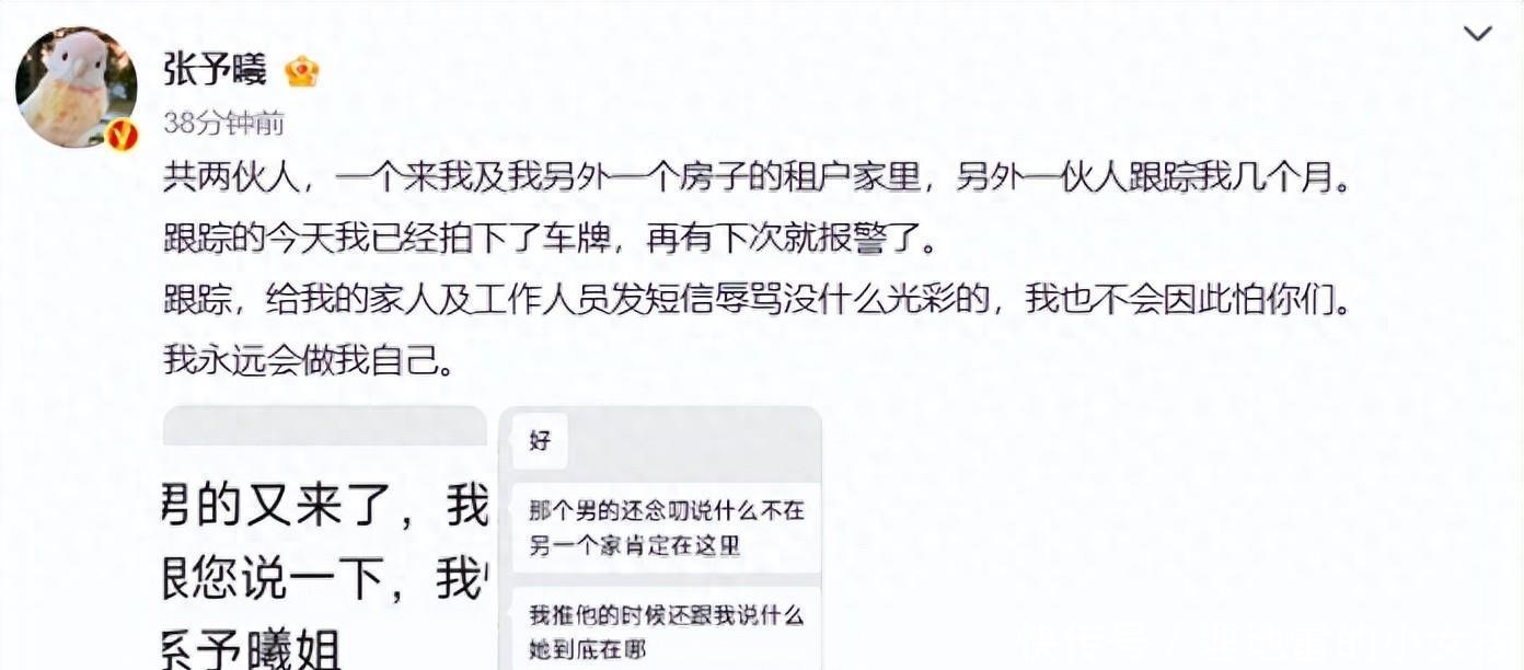 張予曦 發(fā)博斥跟蹤者,并表示再有下次就報(bào)警了