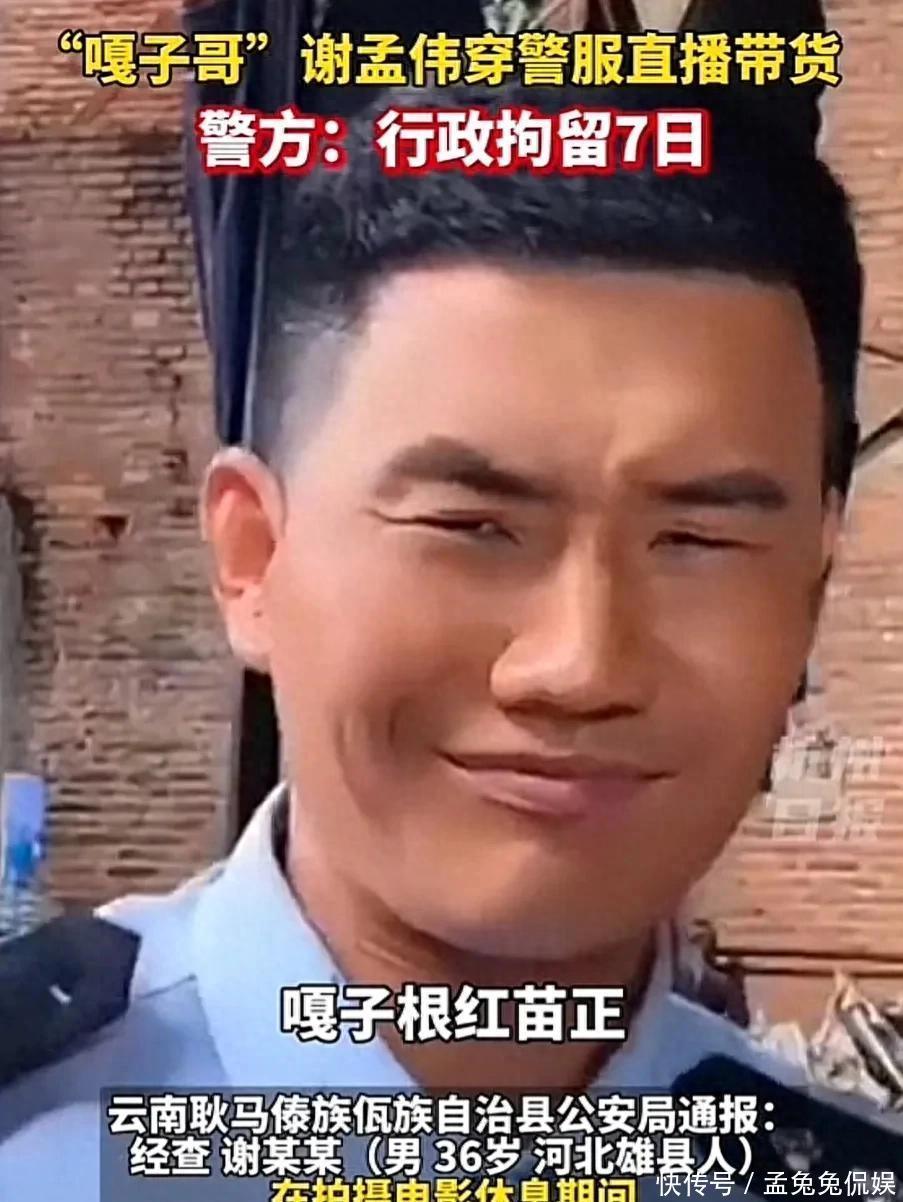 擁有眾多粉絲,帶貨能力超群的“嘎子哥”謝孟偉被拘留了,原因是他在直播帶貨時(shí)穿了警服,還揚(yáng)言自己根正苗紅,結(jié)果立馬就被逮捕了,行政拘留7日,令人哭笑不得。