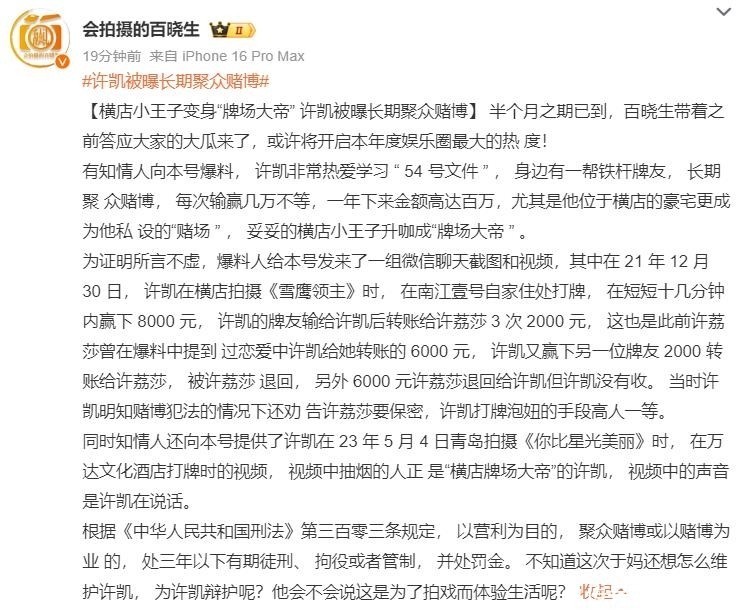 曝许凯赌博