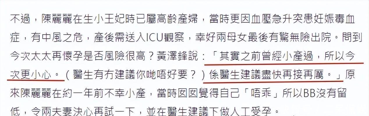 而且黃澤鋒宣布妻子懷孕喜訊后,還向港媒透露妻子之前小產(chǎn)過,加上女兒覺得是自己不夠乖才沒保住妹妹,讓他們夫妻倆決定在醫(yī)生建議下人工受孕。