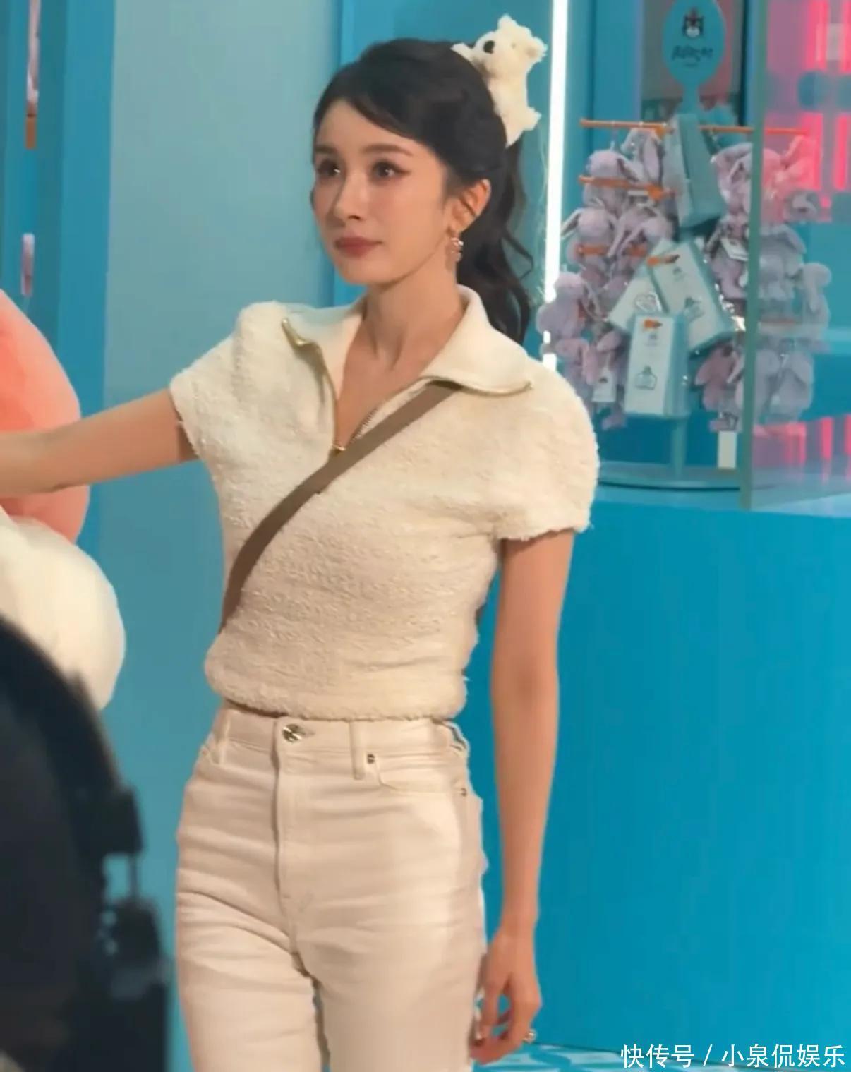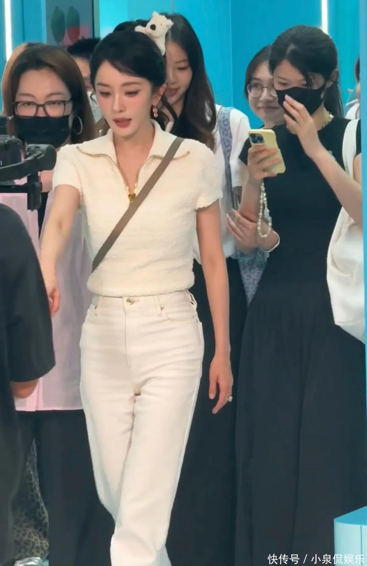 當(dāng)日,楊冪扎著高馬尾,戴著白色小狗頭飾,身穿白色polo領(lǐng)上衣,搭配白色長(zhǎng)褲,全白look利落又俏皮,盡顯青春感。生圖狀態(tài)下皮膚白皙,顏值氣質(zhì)在線,真的完全看不出真實(shí)年齡,感覺(jué)就像二十歲左右的大學(xué)生一樣。