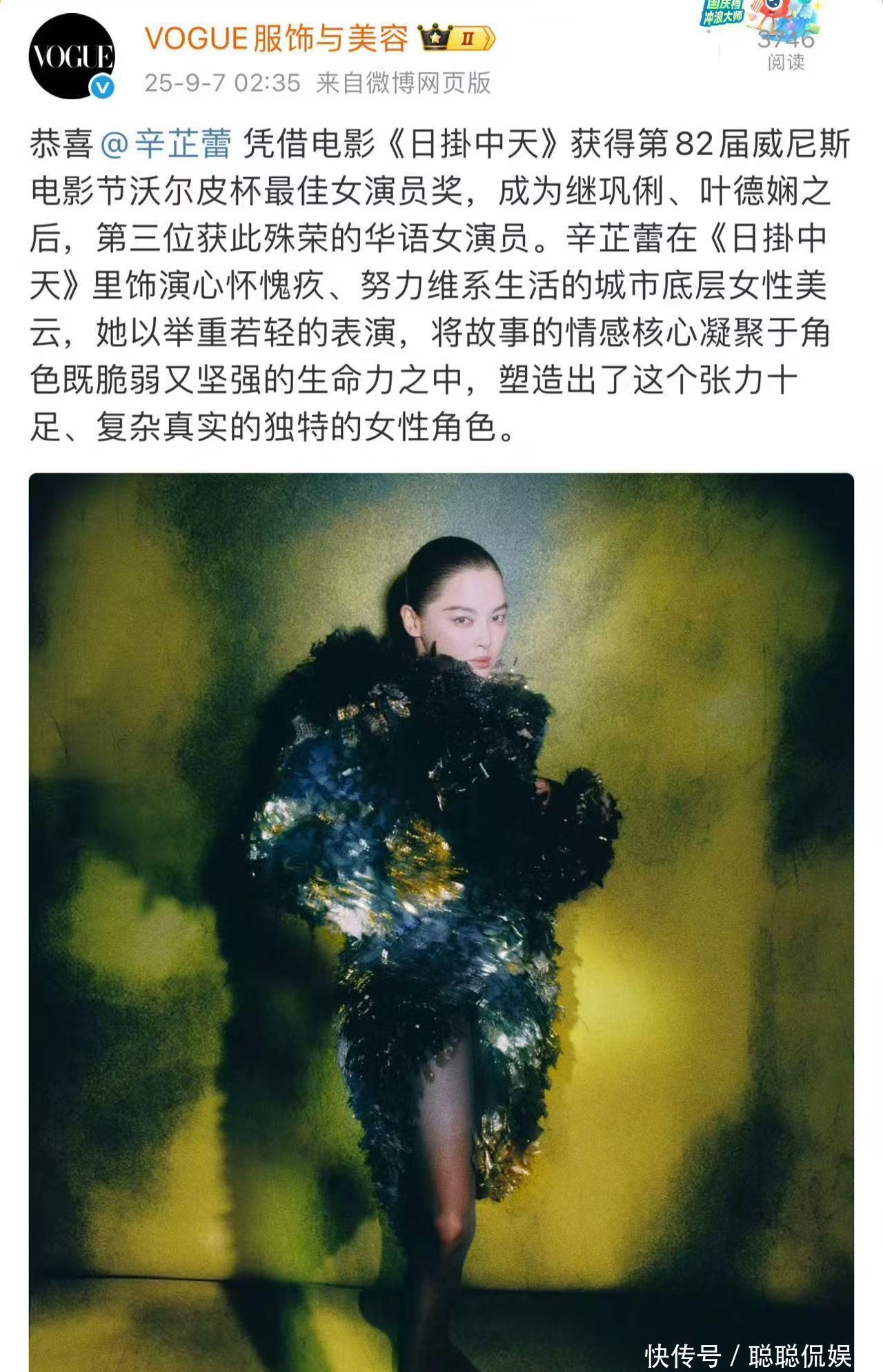 官宣喜訊“今天我們相聚在這里,是為了慶祝辛芷蕾斬獲威尼斯影后的?!?月7日,辛芷蕾憑借在電影《日掛中天》中的表現(xiàn),成功拿下威尼斯影后。