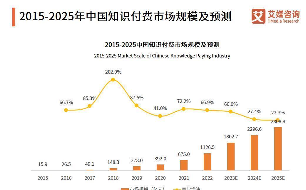 過去直播帶貨時(shí),好歹還要選品,遇到質(zhì)量問題還要處理投訴退款,現(xiàn)在賣課錄幾段視頻就能反復(fù)售賣,所謂的"服務(wù)" 不過是助理在粉絲群里發(fā)發(fā)動(dòng)態(tài)。其實(shí)賣課本身并沒有錯(cuò),現(xiàn)在職場人搶著學(xué)技能、寶媽們補(bǔ)育兒知識(shí)、年輕人追著學(xué)理財(cái),優(yōu)質(zhì)內(nèi)容的缺口一直沒填上,大家其實(shí)是真的愿意為真知識(shí)、好經(jīng)驗(yàn)掏腰包的。根據(jù)艾媒咨詢數(shù)據(jù)顯示,2022年中國知識(shí)付費(fèi)市場規(guī)模達(dá)1126.5億元,較2015年增長約70倍,預(yù)計(jì)2025年市場規(guī)模將達(dá)2808.8億元,用戶規(guī)模有望達(dá)到6.4億。