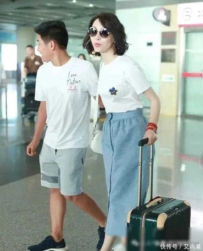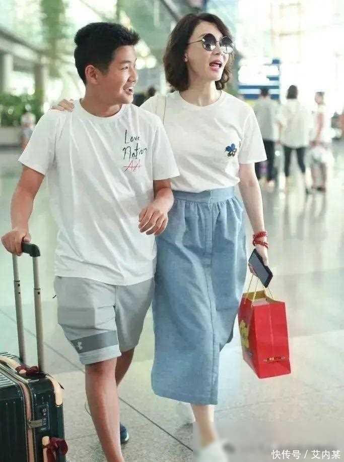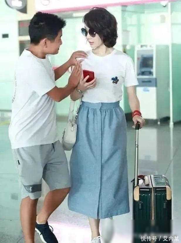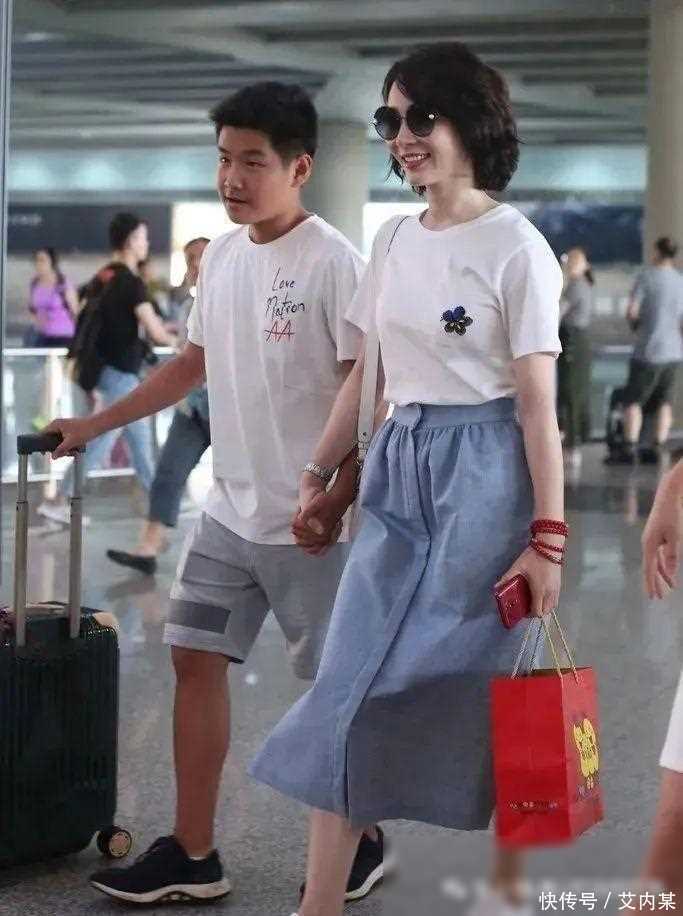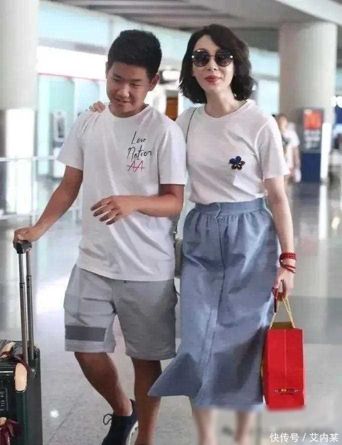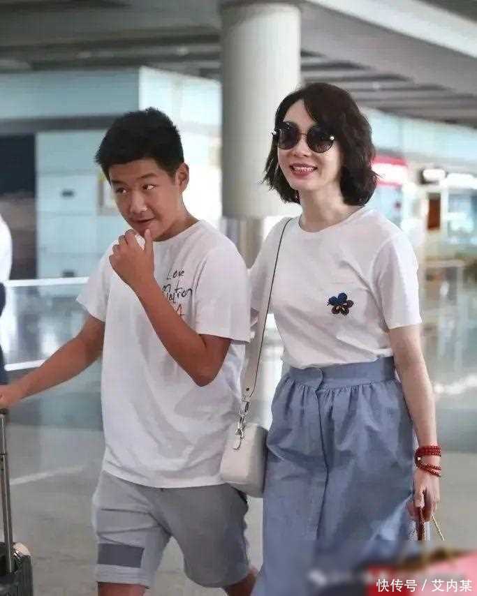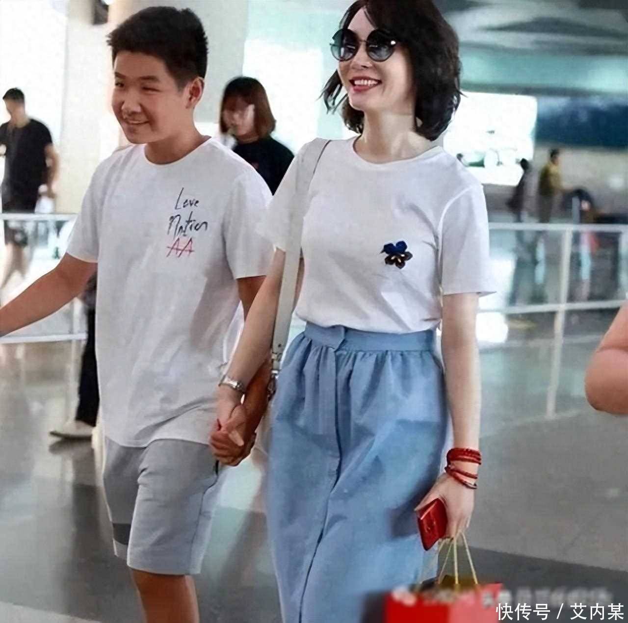 陈数岁儿子手牵手走机场,她打扮年轻靓丽,不像母子像姐弟