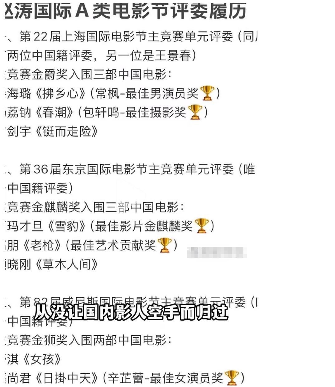 “趙濤老師爭獎確實厲害,有她在就不會空手而歸?!?/p>