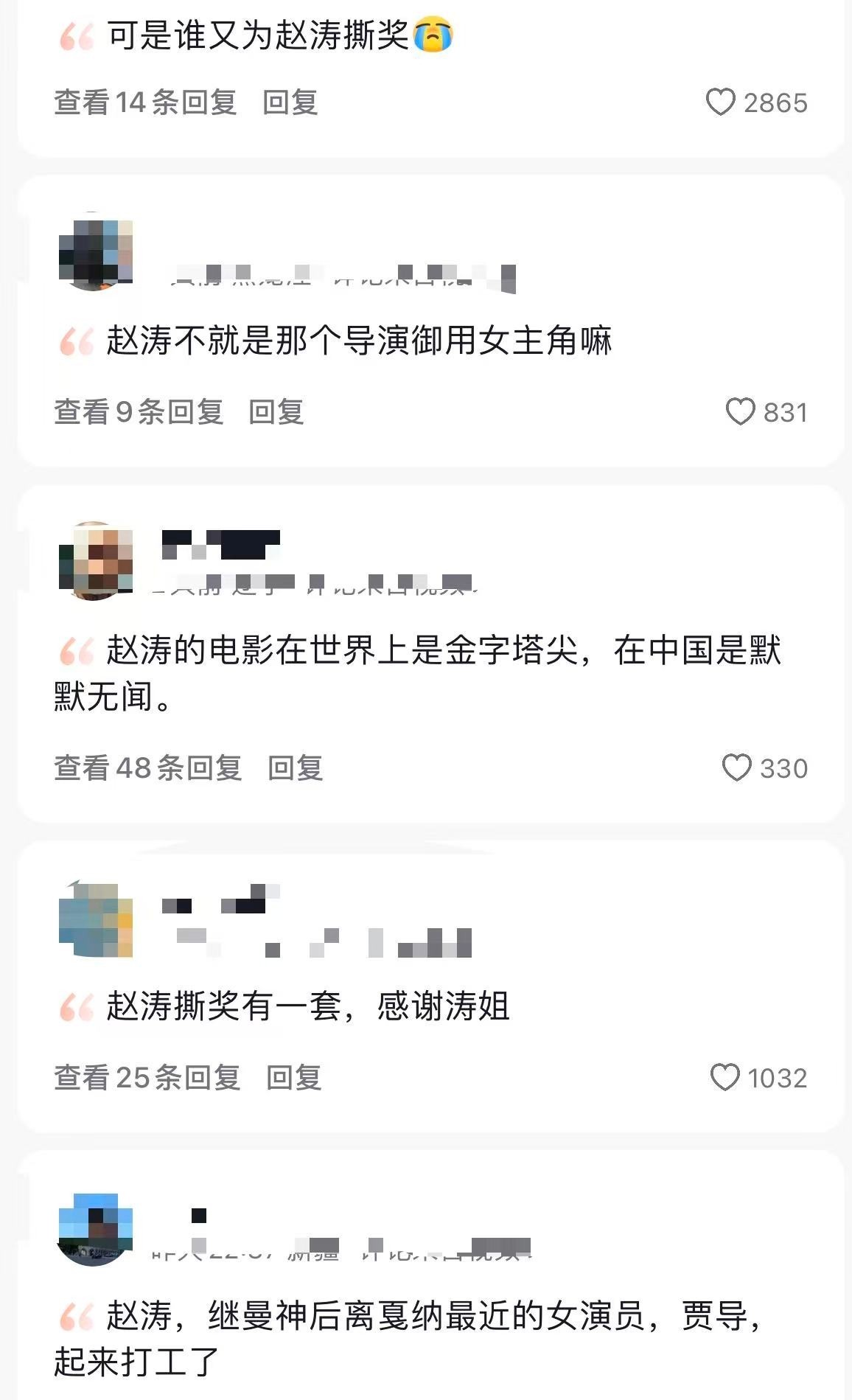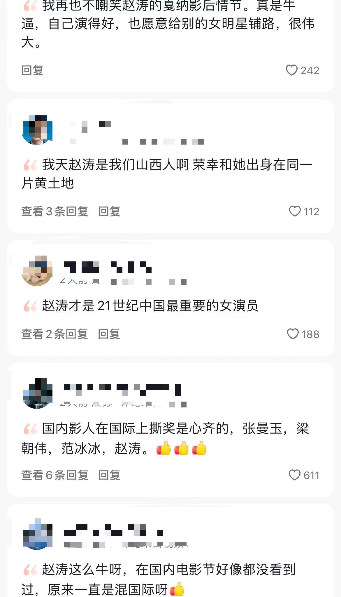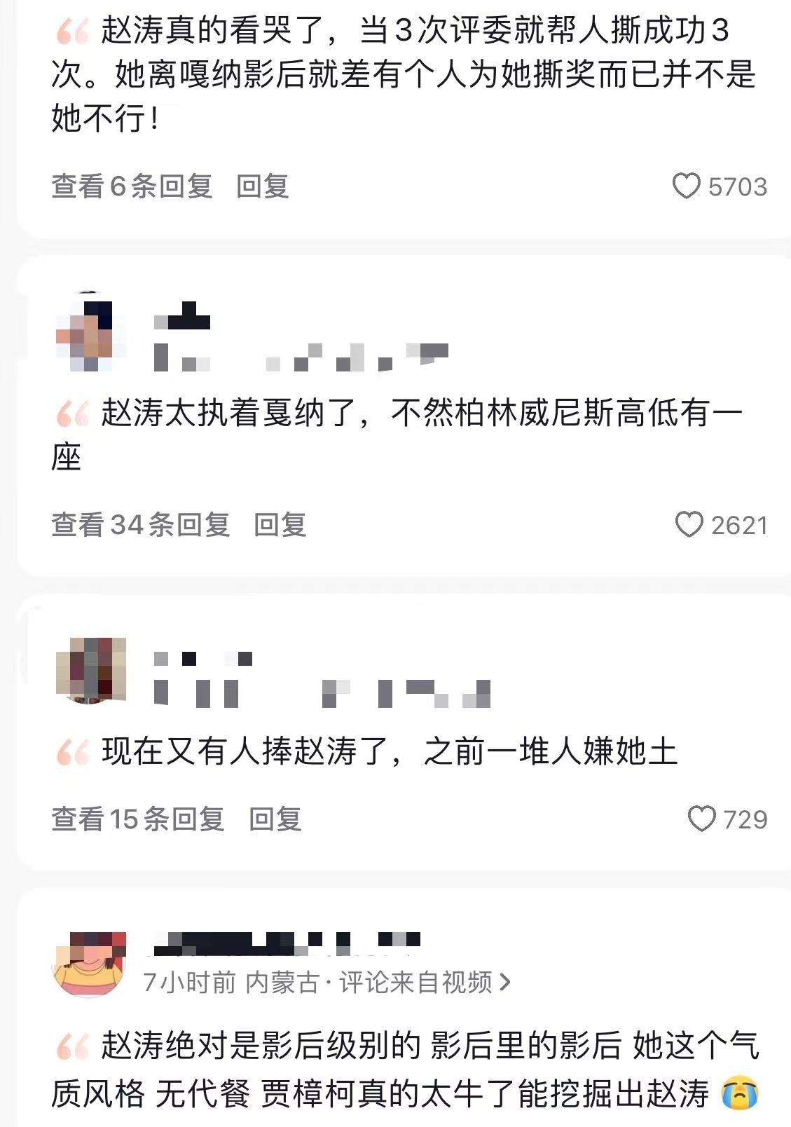 網(wǎng)友對趙濤獲戛納影后的期待,既是對她多年演藝付出的認可。