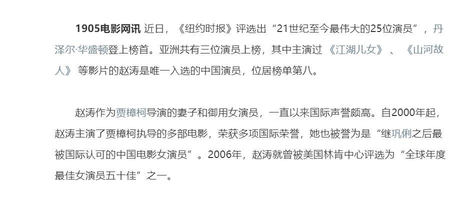 “繼鞏俐之后,國際最熟知的中國女演員”是外媒對趙濤的最高評價。
