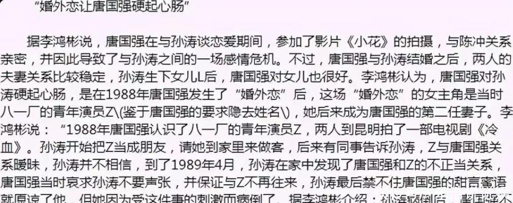 在這兩年他連家都很少回,連剛出生兩年的女兒也很少關(guān)注,全靠妻子在家照顧老小。孫濤真是愛極了他,甚至有女影迷來找他,她都親自操持,完全看不到嫉妒埋怨。癡心終被錯(cuò)付可這樣無私的愛換不回來真情,在唐國強(qiáng)去昆明拍攝電視劇時(shí),這樣一個(gè)女人出現(xiàn)了。