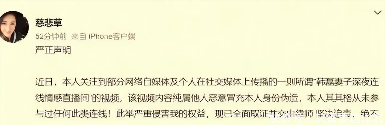 現(xiàn)在韓磊和老婆都發(fā)了聲明,說出軌全是瞎編的。那個(gè)造謠的也在微博上道歉了。