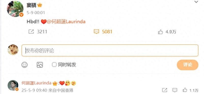 直到今年5月9日何超蓮生日,竇驍在午夜剛過就發(fā)布祝福動態(tài),并特地@了她。