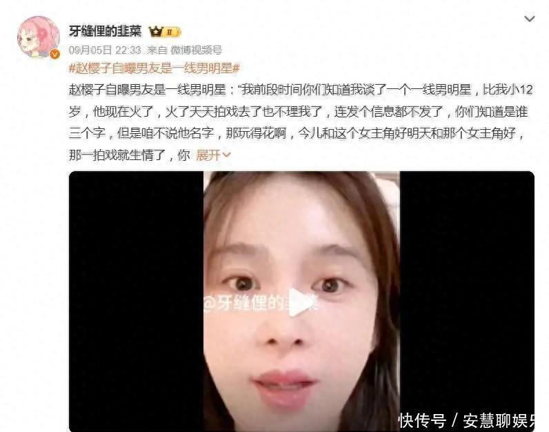 赵樱子直播说,她谈过一个一线男明星,比自己小十二岁。现在他火了,连信息都不回。她说对方是三个字的一线男星,吐槽他一拍戏就生情,玩得花。