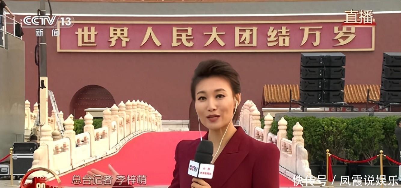 她站在天安门前,手握麦克风铿锵有力地解说着。一身干练的红色西服,非常潇洒利索,毕竟在这个重要的日子里,梓萌的出现也相当于咱们“门面”的另一种体现。