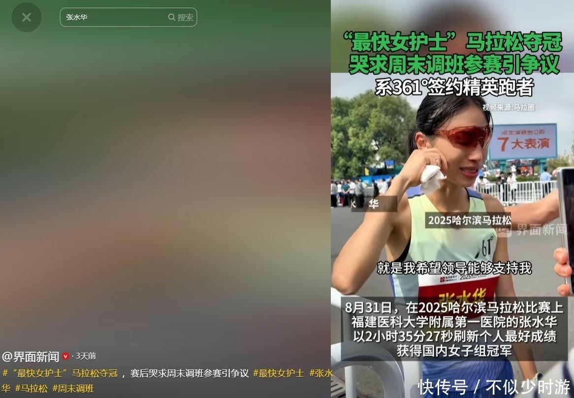 界面新闻——《“最快女护士”马拉松夺冠,赛后哭求周未调班参赛引争议》2025-09-02