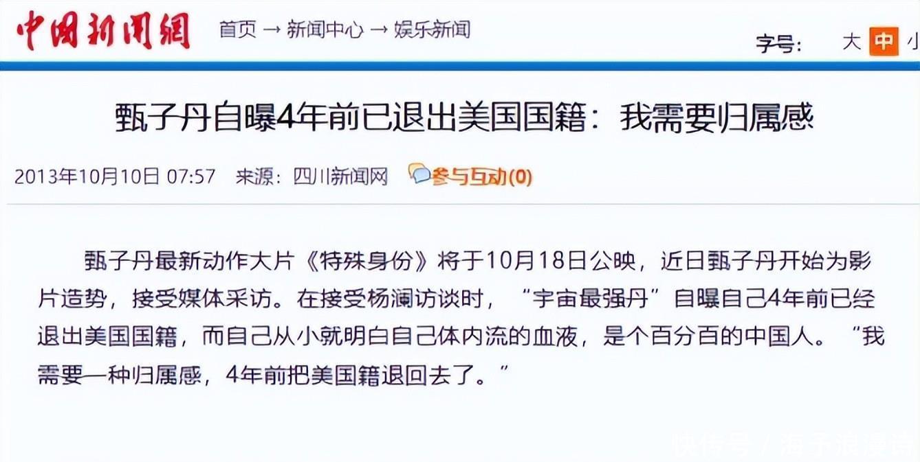 从美国回到中国的选择甄子丹的身份转变其实早就开始了。2009年那一年,很多人都不知道,甄子丹做了一个重要决定——放弃美国国籍。