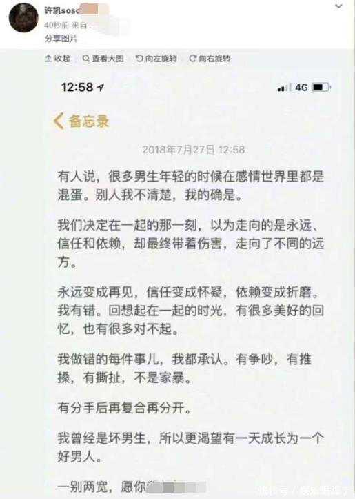 许凯前女友再发声:我的天要亮了吗?曾控诉他出轨家暴引热议