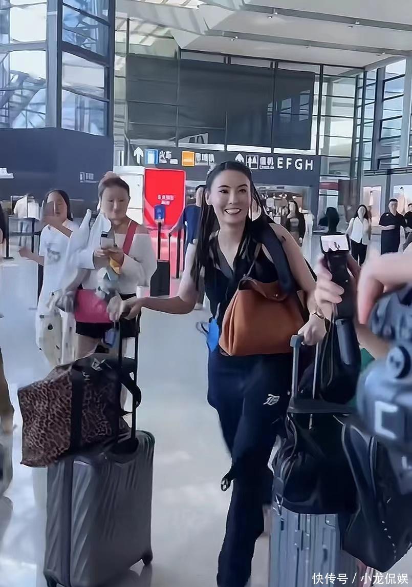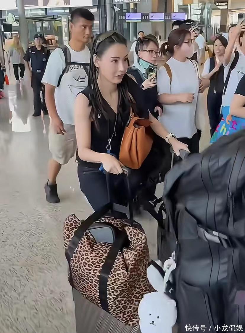 张柏芝录综艺,手推行李箱肩扛大包小包,颧骨高嘴凸颜值变化大