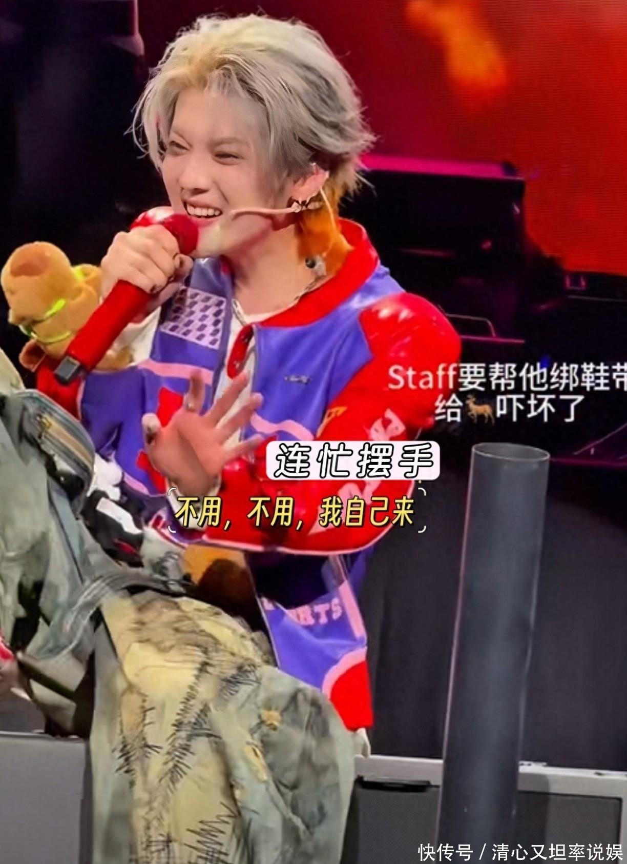 在系鞋帶時,鹿晗一邊系鞋帶,一邊把話筒放在雙膝之間繼續(xù)唱歌,絲毫不影響自己的歌唱水平。