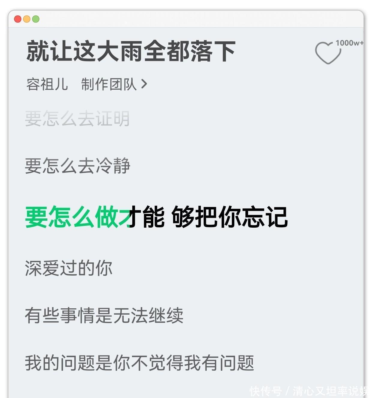 歌曲敏感:《就讓這大雨全都落下》可是一首失戀情歌,那一句“要怎么做才能夠把你忘記,深愛過的你”,真的是聽著都心碎了,太適合失戀了。
