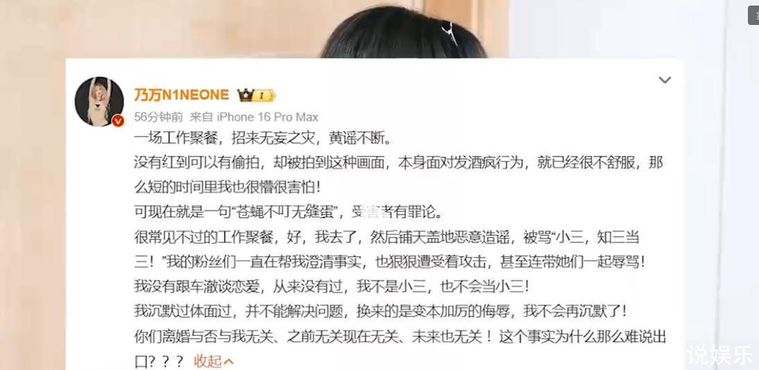視頻一經曝光,網絡瞬間炸開了鍋。網友們紛紛對車澈的行為表示憤怒與譴責,“車澈發(fā)酒瘋,簡直太過分了,完全不顧及他人感受,這種行為嚴重違背道德底線”“乃萬太可憐了,無端遭受這樣的騷擾,車澈必須給個說法” 等評論鋪天蓋地。不少網友指出,車澈作為知名綜藝導演,曾打造過《中國有嘻哈》等爆款節(jié)目,在業(yè)內頗具影響力,本應以身作則,為公眾樹立良好榜樣,但其此次發(fā)酒瘋的行為,實在令人大跌眼鏡,不僅嚴重損害了自身形象,更對整個娛樂圈的風氣造成了不良影響。隨著事件的發(fā)酵,乃萬也深陷輿論漩渦。部分不明真相的網友,在未了解事情全貌的情況下,對乃萬進行惡意揣測與攻擊,質疑她與車澈之間存在不正當關系,“知三當三” 等負面言論甚囂塵上。面對這些無端指責,乃萬工作室第一時間發(fā)布聲明,明確表示視頻內容為工作聚餐,車澈的行為屬于酒后不當行為,乃萬在當場已明確拒絕并劃清邊界,對方也已第一時間道歉。聲明中還強調,乃萬與聚餐友人們均為工作關系,目前處于單身狀態(tài),呼吁大家停止惡意造謠言論。9 月 12 日晚,乃萬本人也在社交平臺發(fā)聲,言辭激烈地痛斥謠言。她表示,一場原本普通的工作聚餐,卻給自己招來無妄之災,黃謠不斷。面對車澈的發(fā)酒瘋行為,自己當時很懵很害怕,卻因事發(fā)突然,一時不知如何應對。然而,現(xiàn)在卻要承受鋪天蓋地的惡意造謠,被罵 “小三”,自己的粉絲也遭受牽連,被無端辱罵。乃萬堅定地表示:“我沒有跟車澈談戀愛,從來沒有過,我不是小三,也不會當小三!” 她質問車澈和李嘉格,為何不能為自己澄清事實,讓自己淪為這場鬧劇的活靶子。車澈在看到乃萬的發(fā)文后,終于在評論區(qū)留言致歉:“誠懇道歉!是我酒后失態(tài),把你卷進糾紛。對不起!” 但這一道歉似乎并未平息網友們的怒火,許多人認為車澈的道歉來得太晚,且僅在評論區(qū)留言,缺乏誠意,不足以彌補他的過錯。值得一提的是,就在車澈發(fā)酒瘋視頻曝光的同一天,他的前妻李嘉格官宣 “早已離婚恢復朋友關系”。這一時間點的巧合,讓不少網友猜測車澈的此次失態(tài)行為,是否與兩人的婚姻破裂存在關聯(lián)。但截至目前,李嘉格并未對此事做出進一步回應。目前,“車澈發(fā)酒瘋” 這一話題熱度持續(xù)居高不下,不僅在微博、抖音等社交平臺引發(fā)海量討論,還在各大音樂論壇、娛樂社區(qū)引發(fā)深度剖析。車澈后續(xù)是否會發(fā)布正式聲明,對此次事件做出更詳細的解釋與回應?乃萬又將如何應對這場輿論風波,維護自己的名譽?此次事件又將對車澈的事業(yè)發(fā)展產生怎樣的影響?我們將持續(xù)關注,為大家?guī)碜钚孪ⅰ?/p>