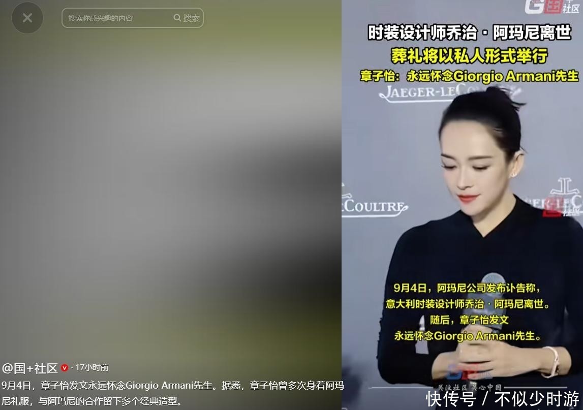 国+社区 ——《9日,章子怡发文永远怀念Giorgio Armani先生。据悉,章子怡曾多次身着阿玛尼礼服,与阿玛尼的合作留下多个经典造型》2025-09