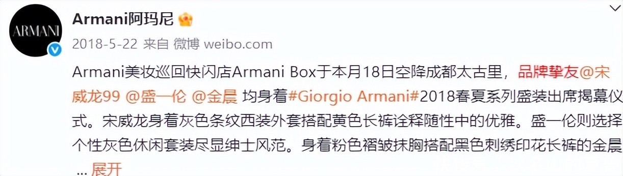 最讓人無法理解的是,王星越也站出來對阿瑪尼的離世表示惋惜,但他并非是阿瑪尼品牌代言人,充其量只能算作是阿瑪尼在娛樂圈中的一個朋友,被阿瑪尼官方定義為“品牌摯友”。