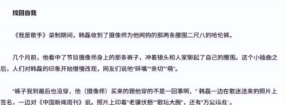 但事情根本沒這么簡(jiǎn)單,后來發(fā)現(xiàn)這完全是在胡扯。說起來韓磊平時(shí)給人的感覺就是挺穩(wěn)重的那種,沒想到之前在一個(gè)節(jié)目里他居然因?yàn)橐粭l褲子意外火了。