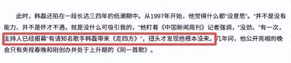 韓磊在節(jié)目里還挺有眼光的,當(dāng)年鄧紫棋還沒現(xiàn)在這么火的時(shí)候,他就說這姑娘以后肯定會(huì)紅。果然被他看準(zhǔn)了。韓磊自己也是靠實(shí)力一路唱出來的,早年一首《走四方》直接把他送上了春晚。