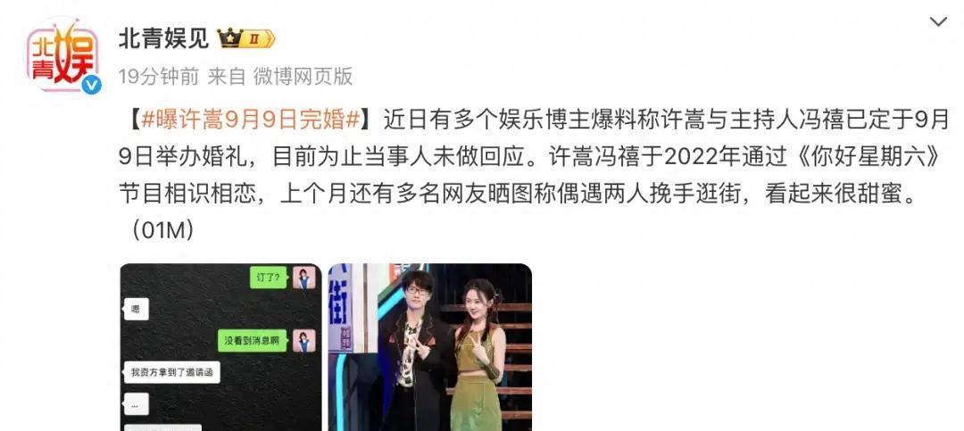 37岁歌手许嵩岁主持人冯禧被曝将𱆕日举办婚礼,这对相岁的情侣从恋爱到结婚仅年,速度之快让网友直呼甜到齁。