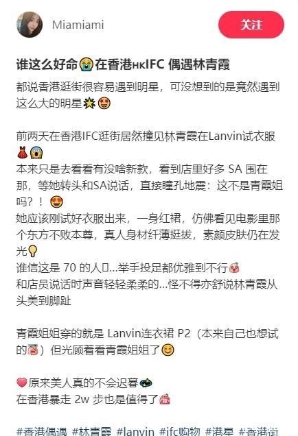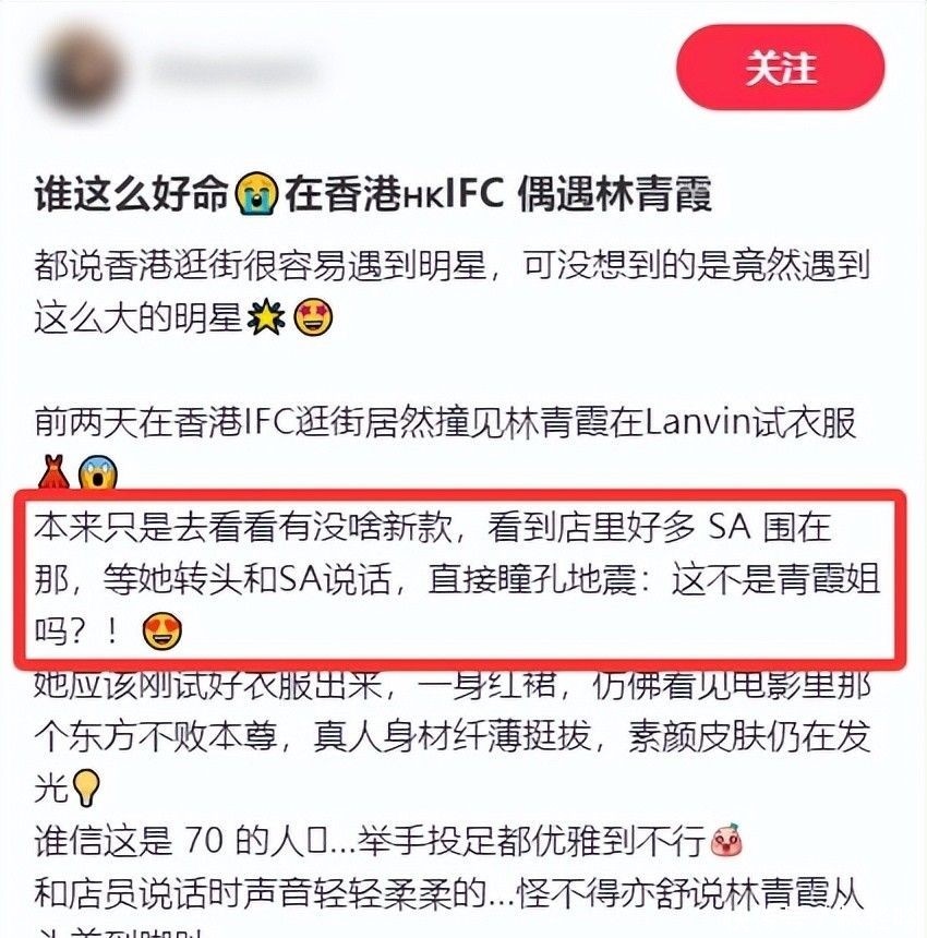 此前就有网友透露,在香港逛街时撞见林青霞正在挑选衣物。