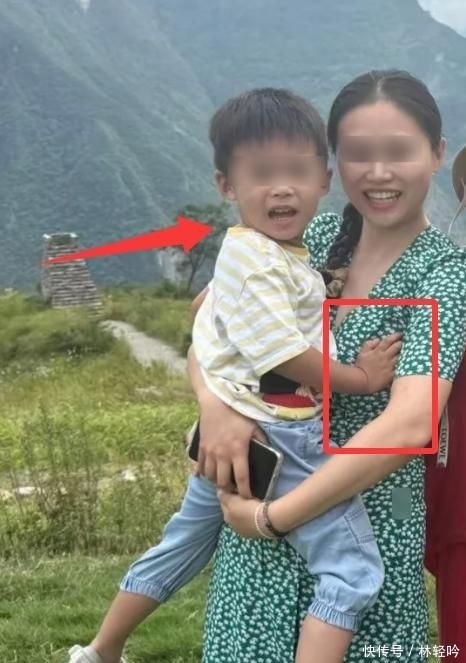 他没有看向镜头,小手和表情都显得有些抗拒,似乎想从母亲怀中挣脱。