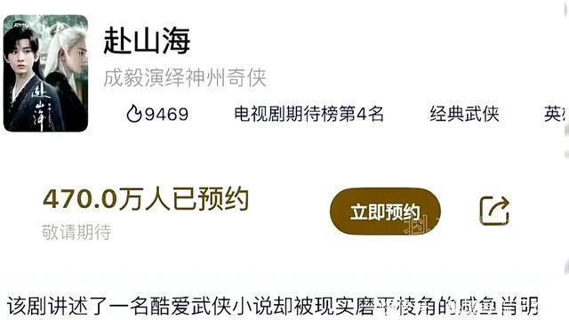 ?????? 《赴山?!愤€未播出就已成現(xiàn)象級(jí)話題,騰訊視頻加愛(ài)奇藝雙平臺(tái)預(yù)約量突破960萬(wàn),創(chuàng)武俠劇微播預(yù)約記錄,未播已獲30家品牌合作,創(chuàng)劇集微播聯(lián)名數(shù)量之最。