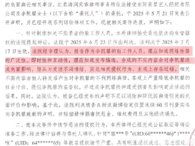 ?????? 6月23法院判決認(rèn)定錄音系前助理惡意剪輯合成,劇方也起訴9名造謠用戶,并指控刑事犯罪。?????? 這場(chǎng)風(fēng)波暫告段落。