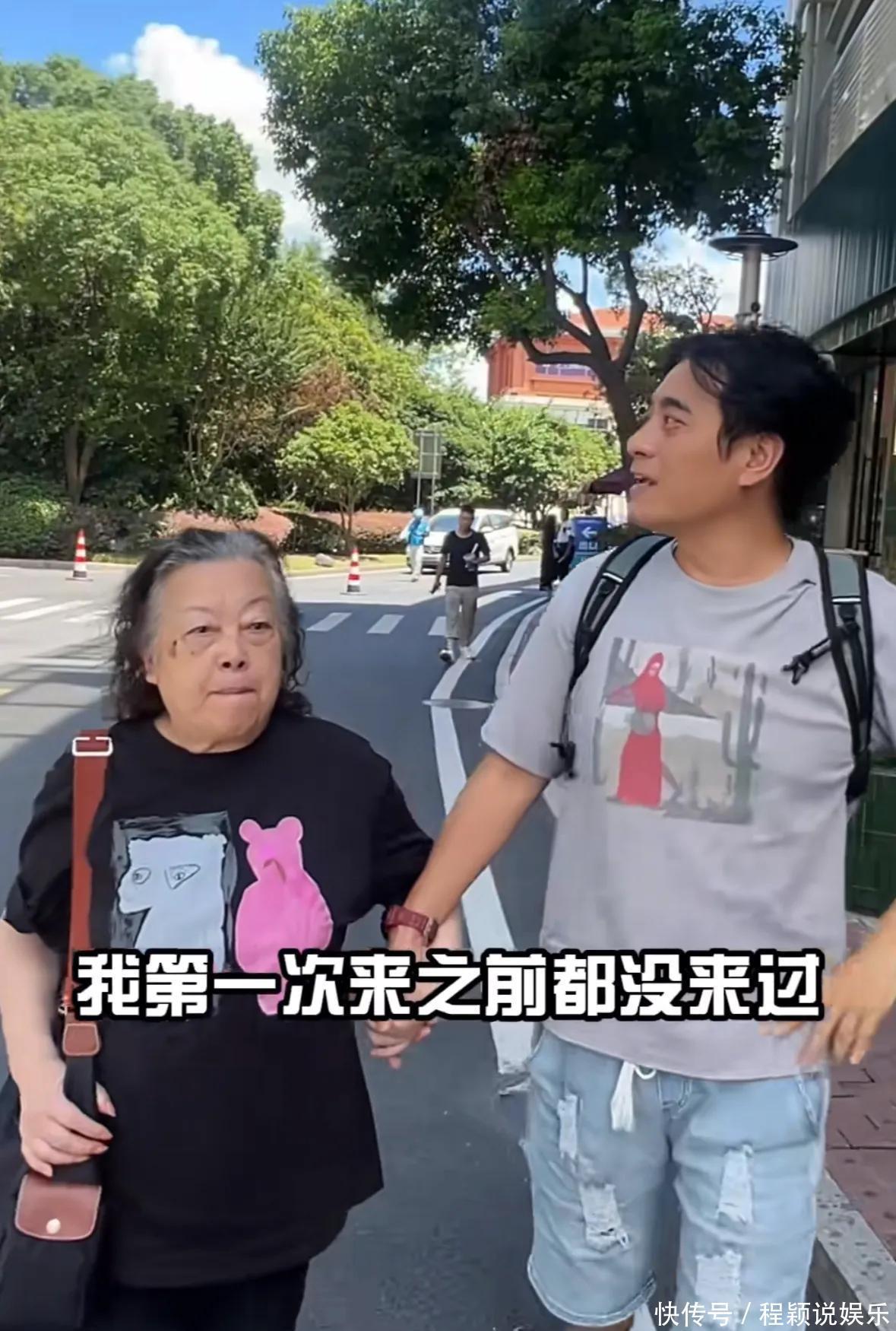 鏡頭前,陳龍牽著母親的手漫步商場(chǎng),雖然身高差距明顯,但母子倆并肩而行的畫面格外溫馨,陳媽媽顯然已經(jīng)習(xí)慣了兒子的鏡頭,全程自然大方,時(shí)不時(shí)還對(duì)著鏡頭露出燦爛的笑容。