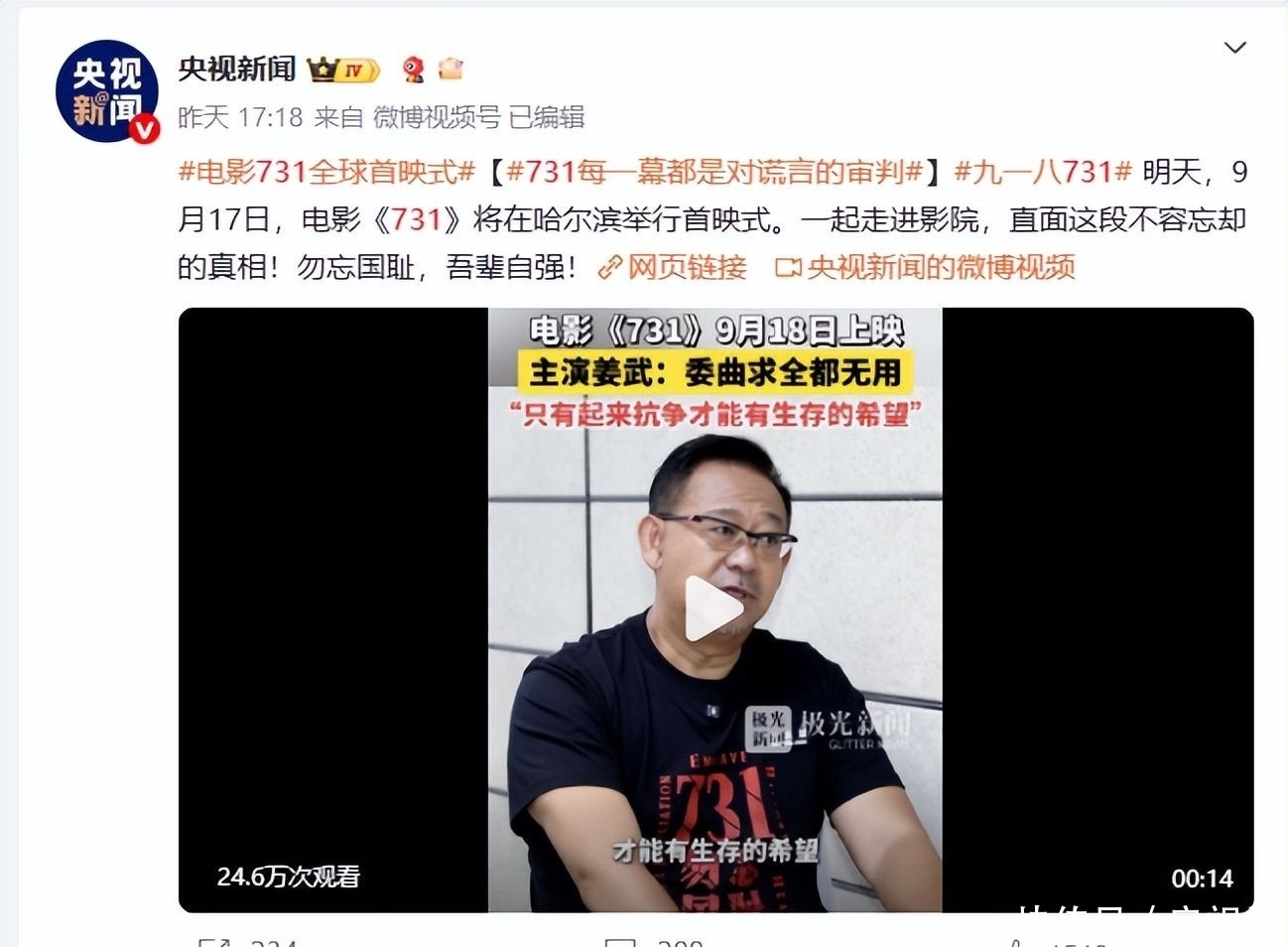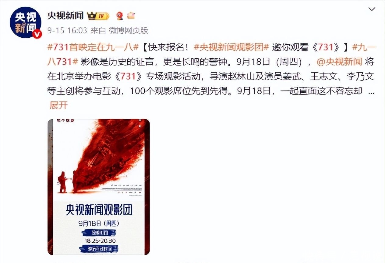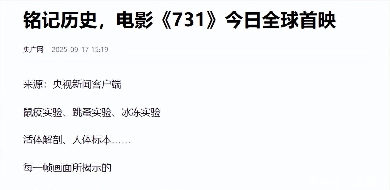 信源來(lái)自:央廣網(wǎng) 2025-9-17 銘記歷史,電影《731》今日全球首映