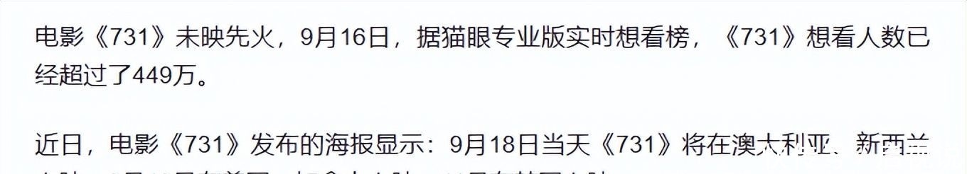 9月18日上午9點(diǎn),《731》將開(kāi)啟全球首映。