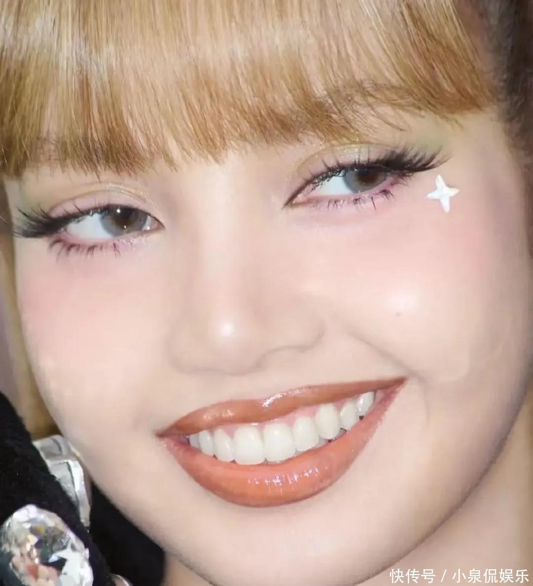 拍摄这种脸部特写的意义在哪里?凸显她的牙齿白还是嘴巴有点吓人呢?Lisa自己在拍摄的时候,难道丝毫不觉得奇怪嘛!看到这里已经很难相信这是杂志拍摄了,更是像随手拍的效果。更让人无语的就是这个造型,扎着麻花辫,戴着粉色蝴蝶结,头发上还别了梳子,把嘴巴化成爱心的形状,不适感扑面而来。