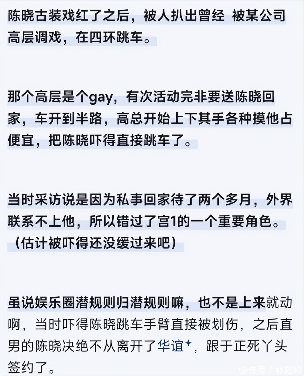 如果他强大的父母在背后支撑,陈晓也不会刚入行就经历这种事情。