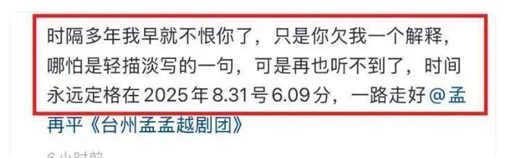 可最令人唏噓的還是孟再平前夫的那條朋友圈“你欠我一個(gè)解釋”。這句話短短幾個(gè)字里,全是委屈和不甘心。