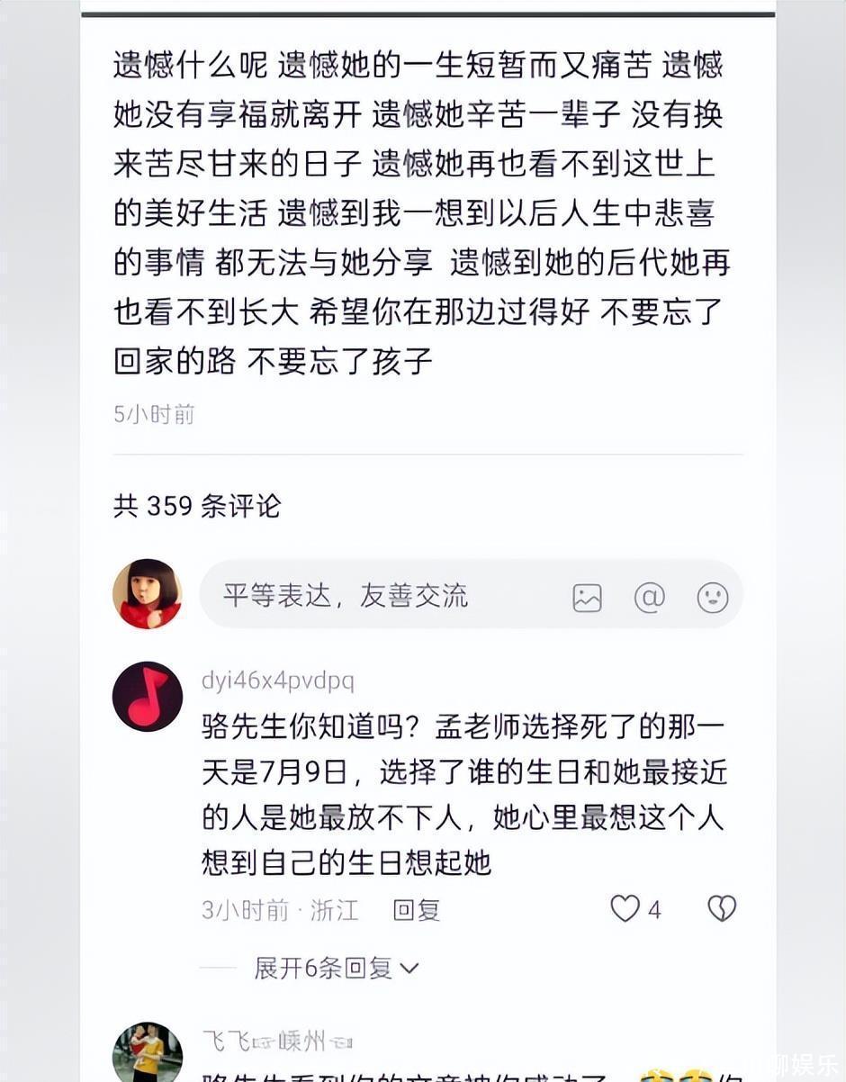 看得出來,孟再平的去世,讓網(wǎng)友們久久不能平靜。其實(shí),感情生活只是孟老師的一部分,她在家庭問題上處理有欠缺,但過了這么久也該釋懷了。