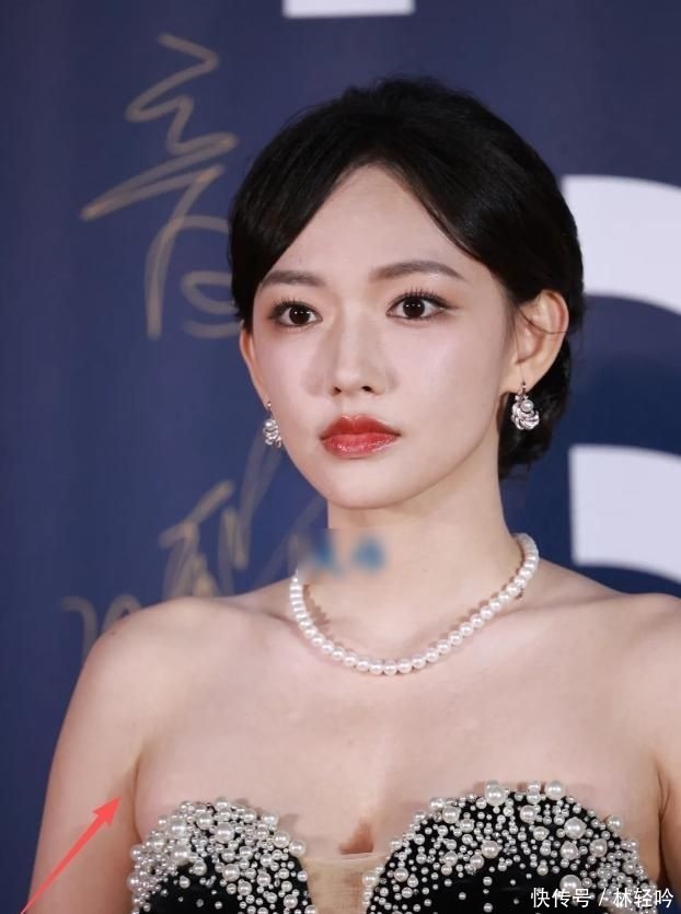 禮服明顯不合身,胳膊下的贅肉遮不住,斜方肌也格外明顯。