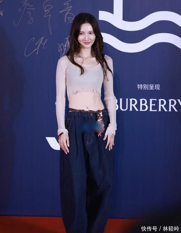 而這次的打扮,露臍裝展現(xiàn)出了她鍛煉出的馬甲線。