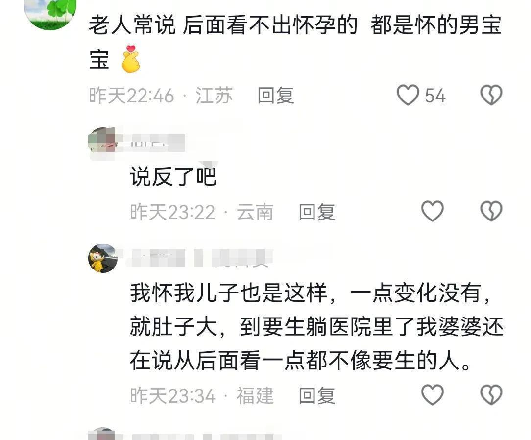 有網(wǎng)友看了方媛的背影后,發(fā)現(xiàn)從背部看起來像是沒懷孕一樣,他用老人的話說,后面看不出懷孕的,都是懷的是男寶寶。